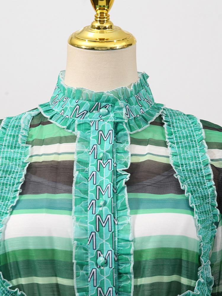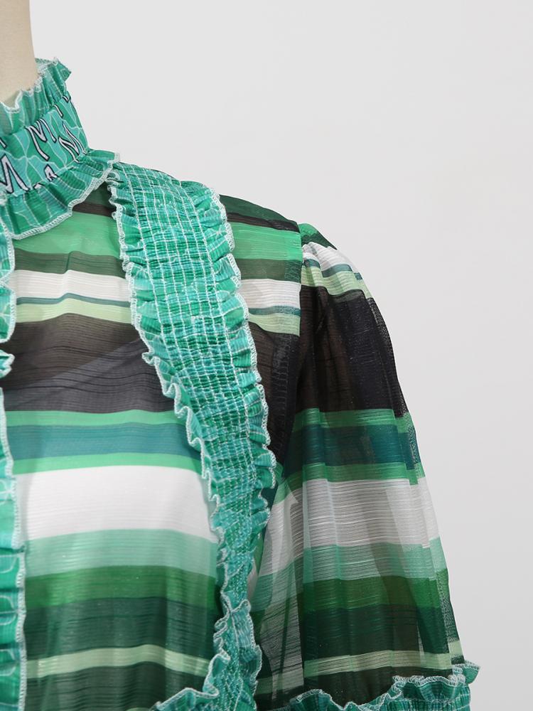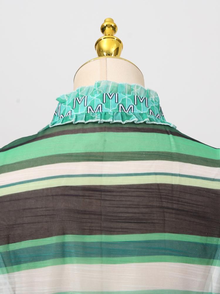فستان ربيعي مطبوع متعدد الالوان بياقه واقفه واكمام واسعه وحزام..يلزم دفع رسوم ضريبيه عند الاستلام
