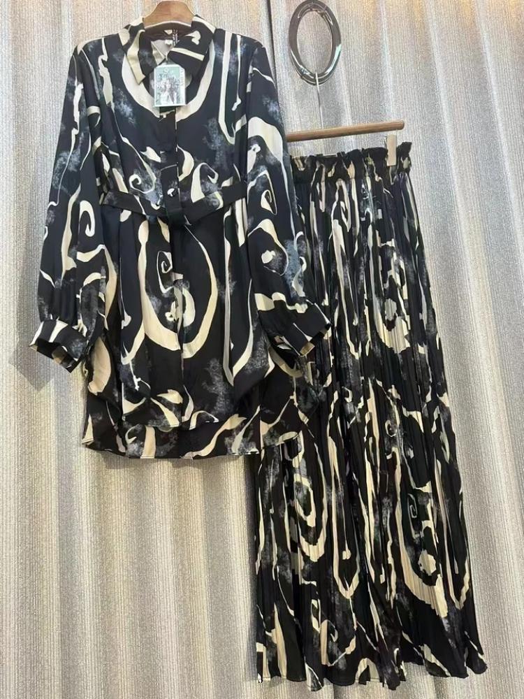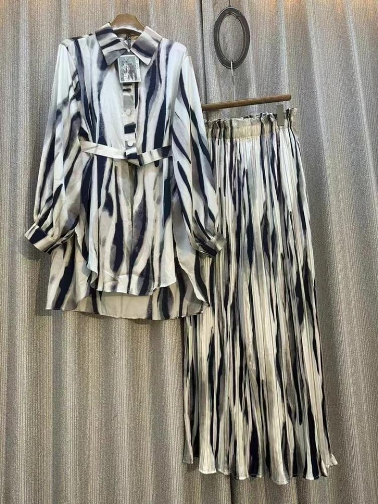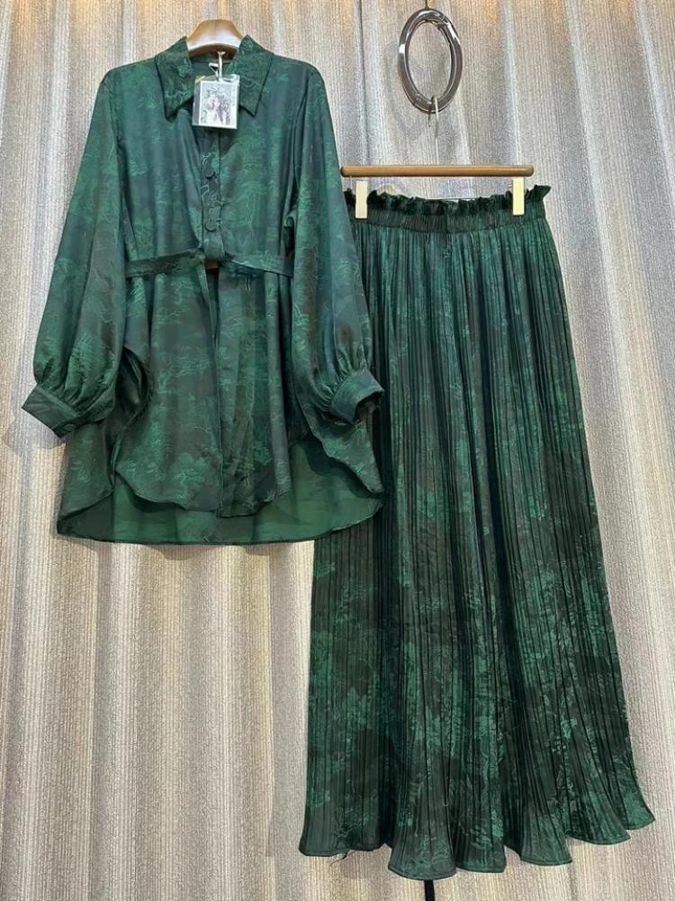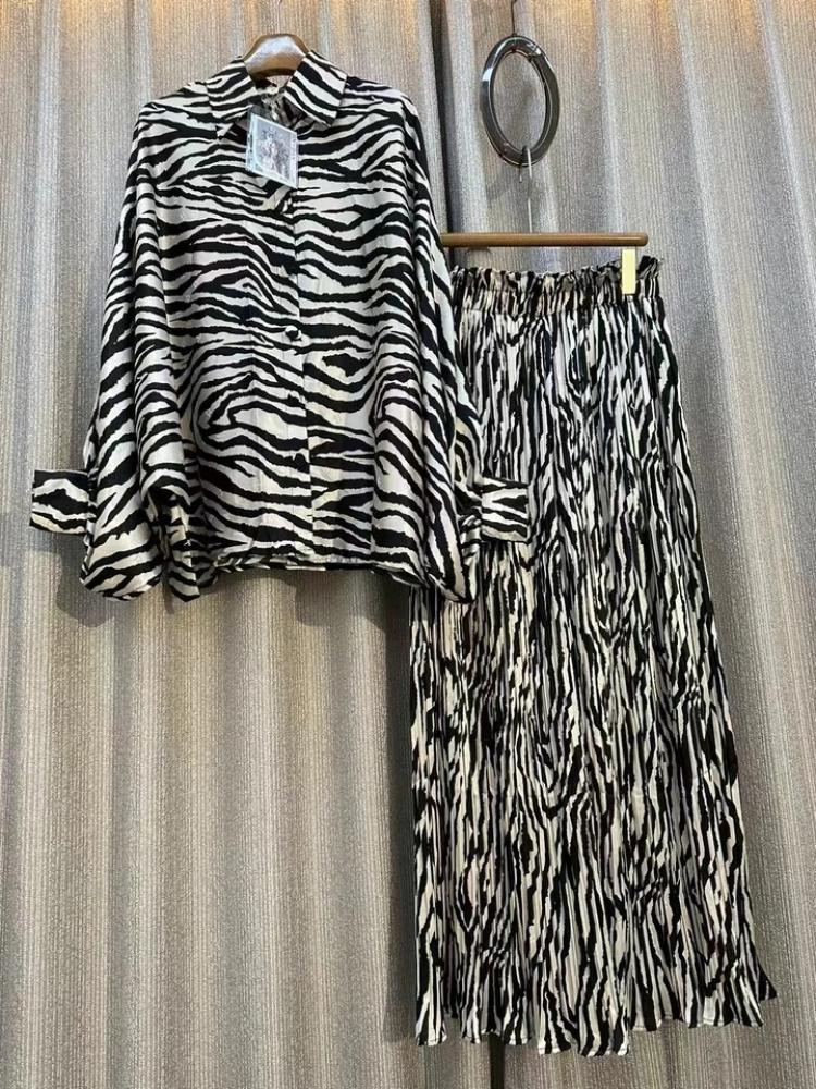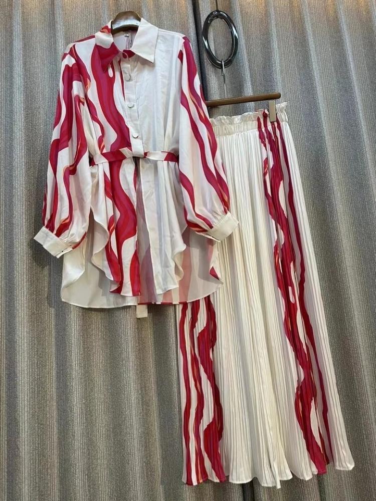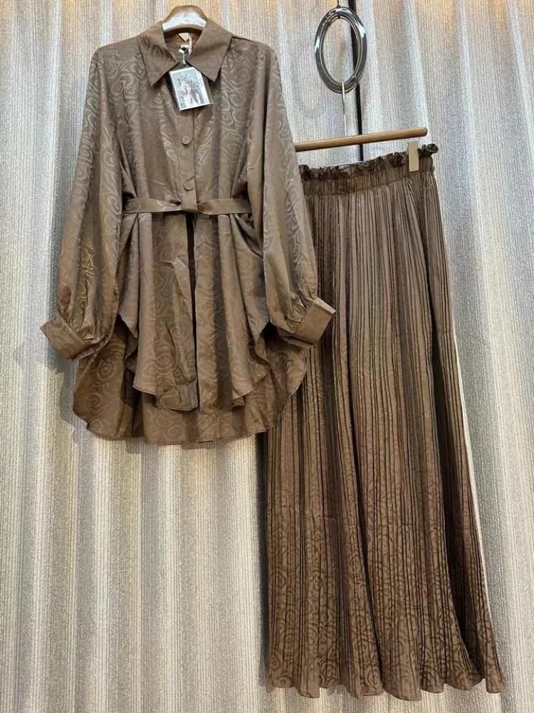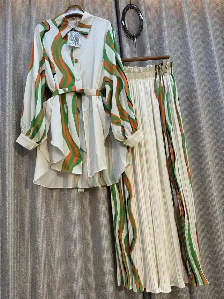 طقم مكون من قطعتين بلوزه بكم طويله وبنطال وسيع..يلزم دفع ضريبه عند الاستلام