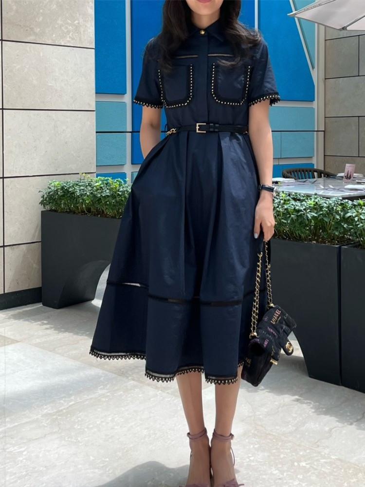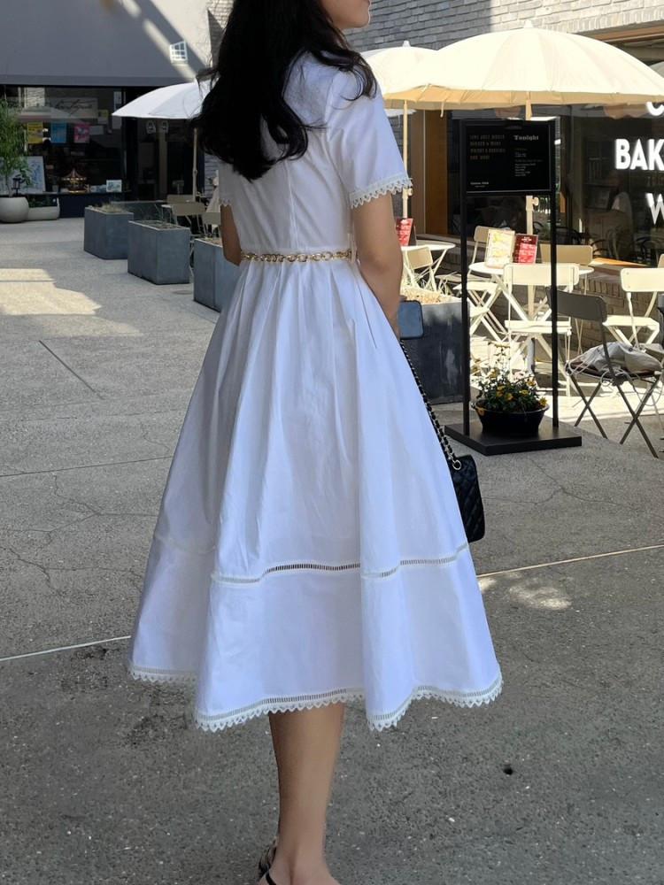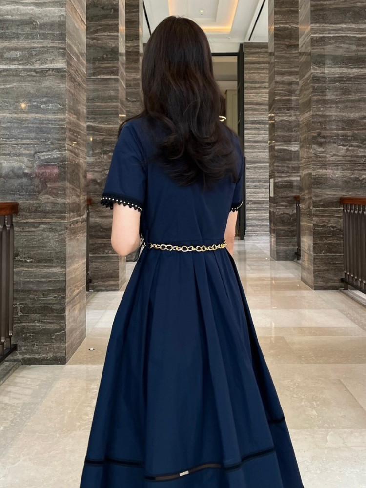 فستان كلاسيك صيفي على الطراز الكوري انيق خصر عالي...متوفر بلونين كحلي وابيض....حجم واحد مناسب لحجم سمول وميديم فقط