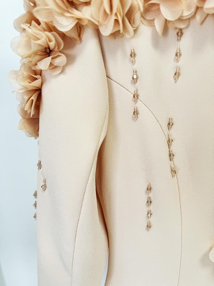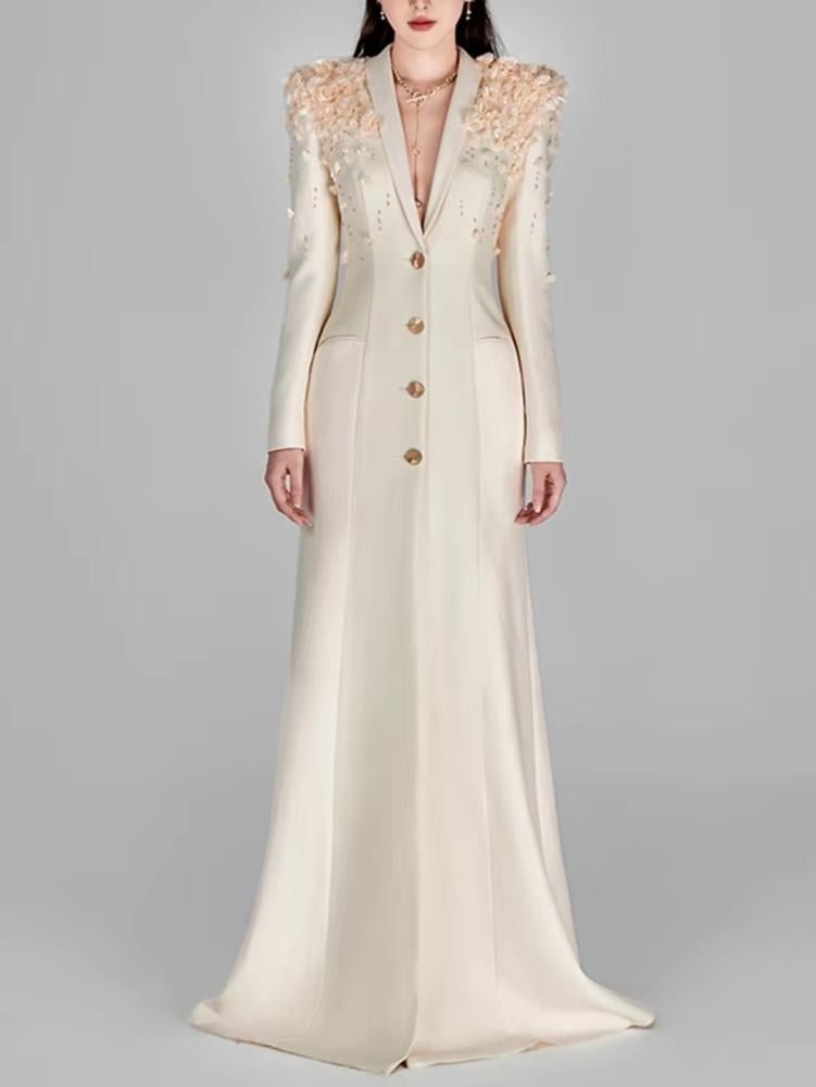 فستان سهرة نسائي ماكسي بااكمام طويله مزخرف بالزهور