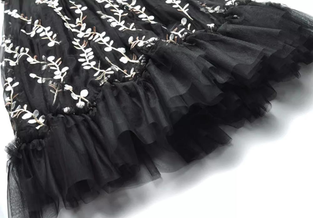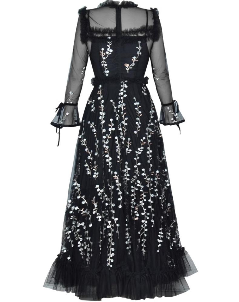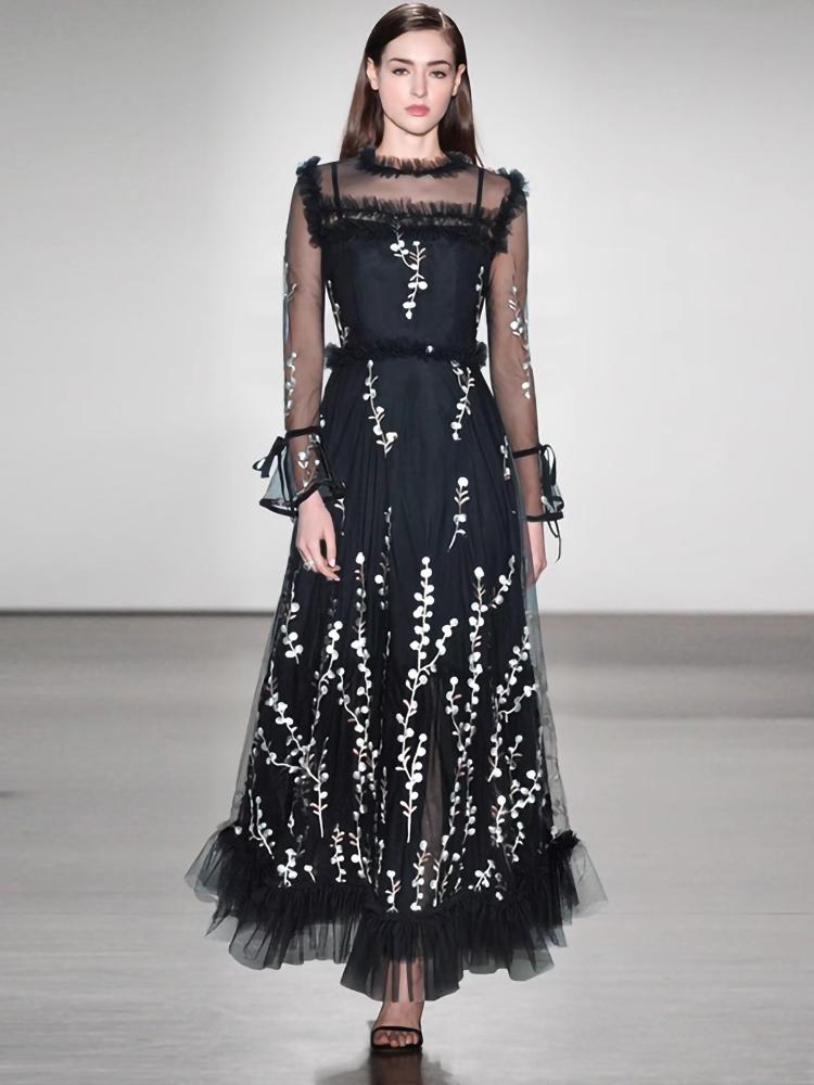 فستان سهرة صيفي انيق طويل اكمام طويله ومطرز
