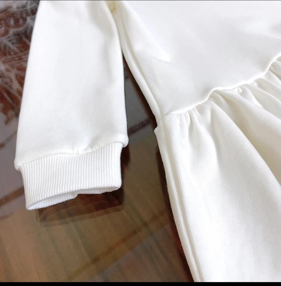 فستان برقبه دائريه مطبوع عليه حروف كرتونيه مناسب للخريف والشتاء