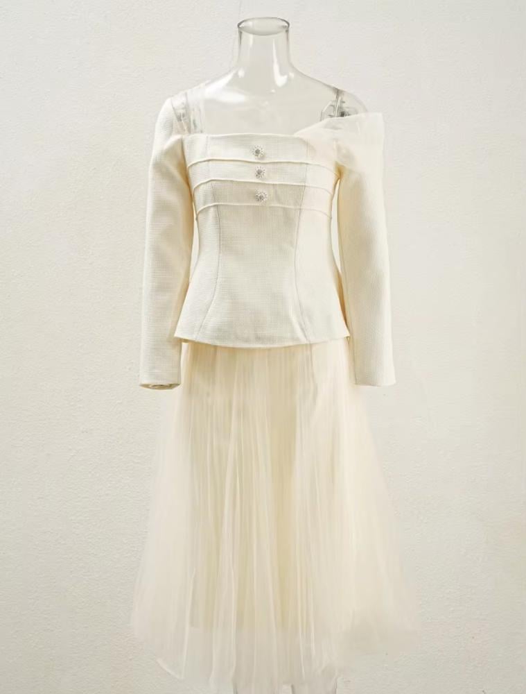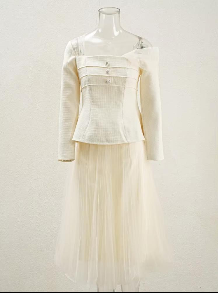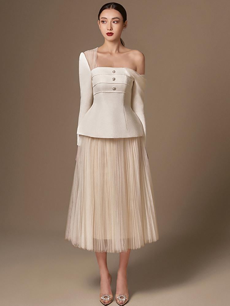 طقم مكون من تنوره وتوب. تنوره عالية الخصر مع توب معطف..