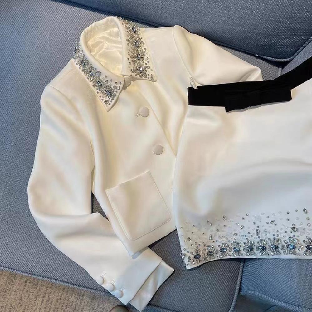 طقم خريفي مكون من توب وتنوره قصيره مطرزه بحجر الراين ..
