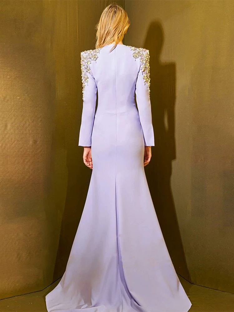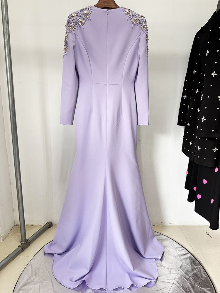 فستان سهرة طويل بااكمام طويله مطرز ..متوفر لونين ...الرجاء التواصل مع خدمة العملاء لطلب دليل المقاسات