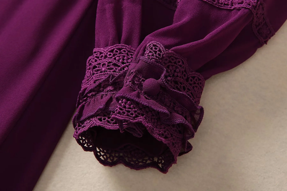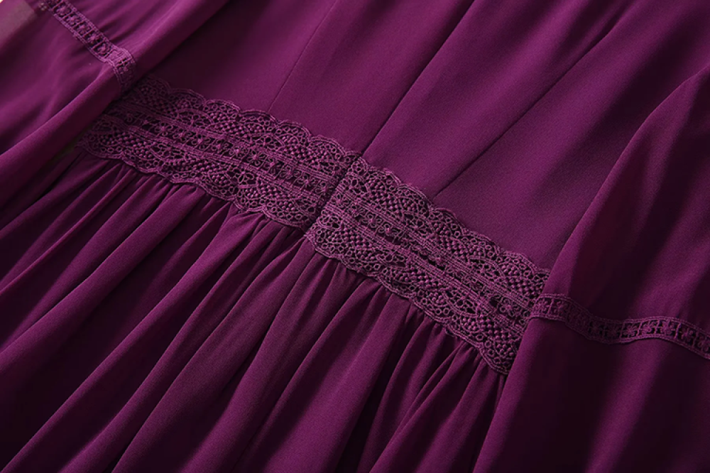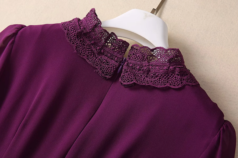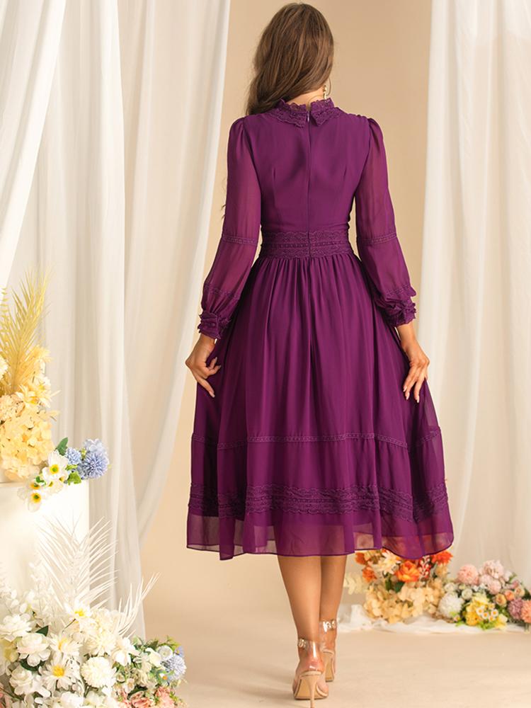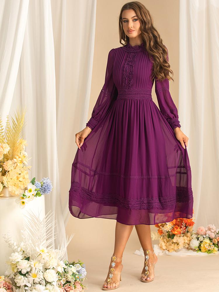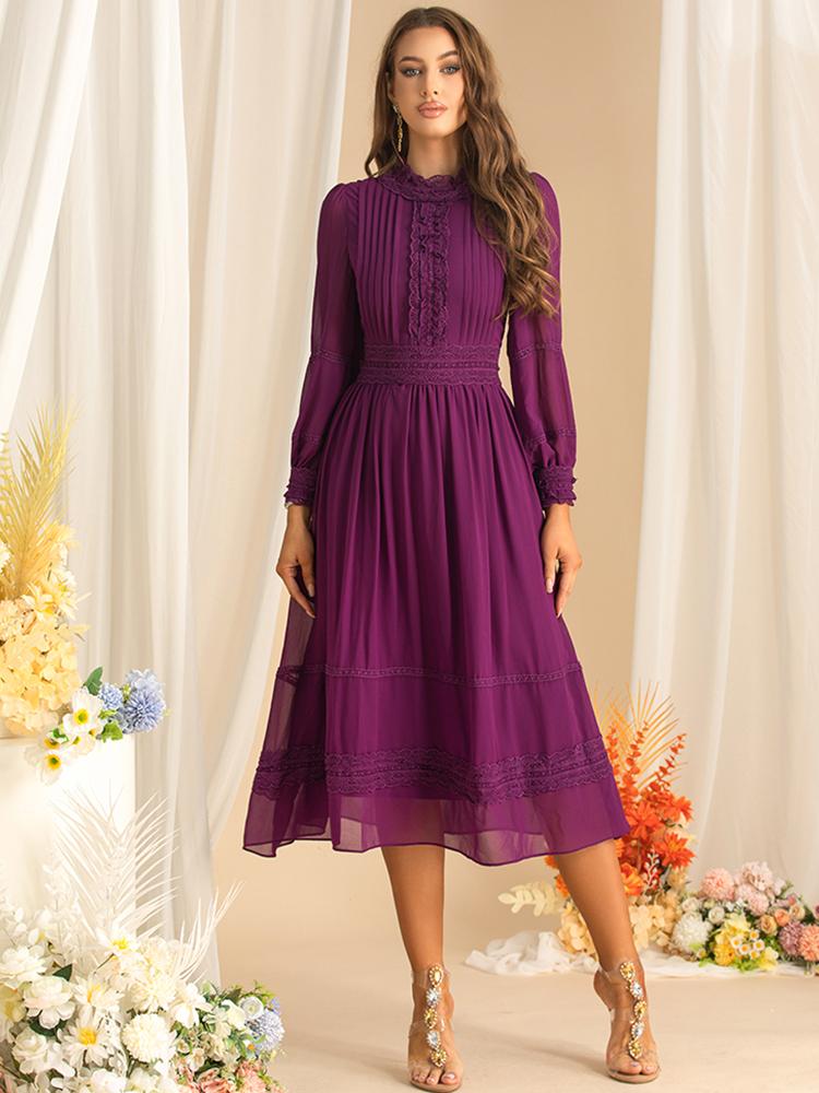 فستان بااكمام طويله وخصر عالي ياقه قائمه بااربطه