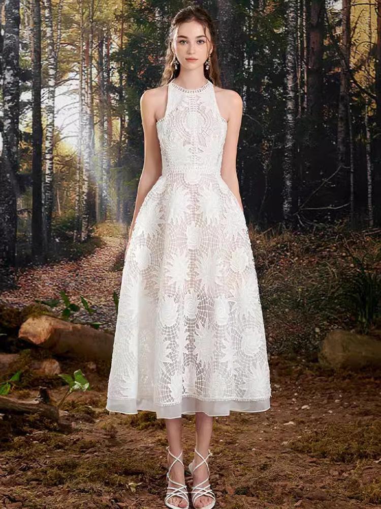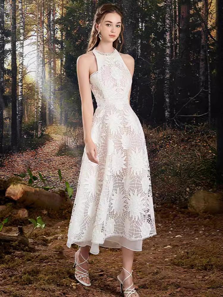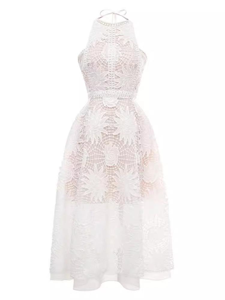فستان دانتيل نسائي مطرز مكشوف الظهر مجوف خصر مرتفع..